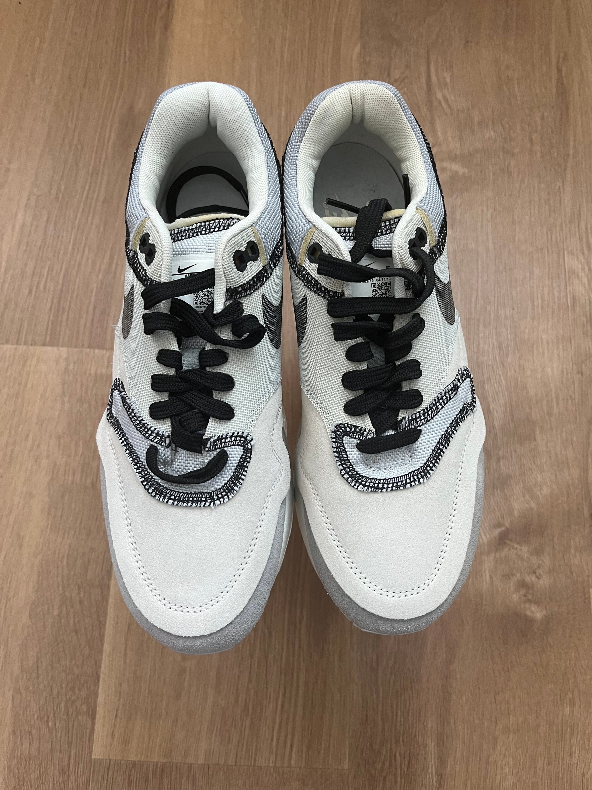 The Nike Air Max 1 Inside Out Phantom Black is a unique variation of the iconic Air Max 1, featuring color schemes in Phantom, black, Pure Platinum, Wolf Grey, and Sail.